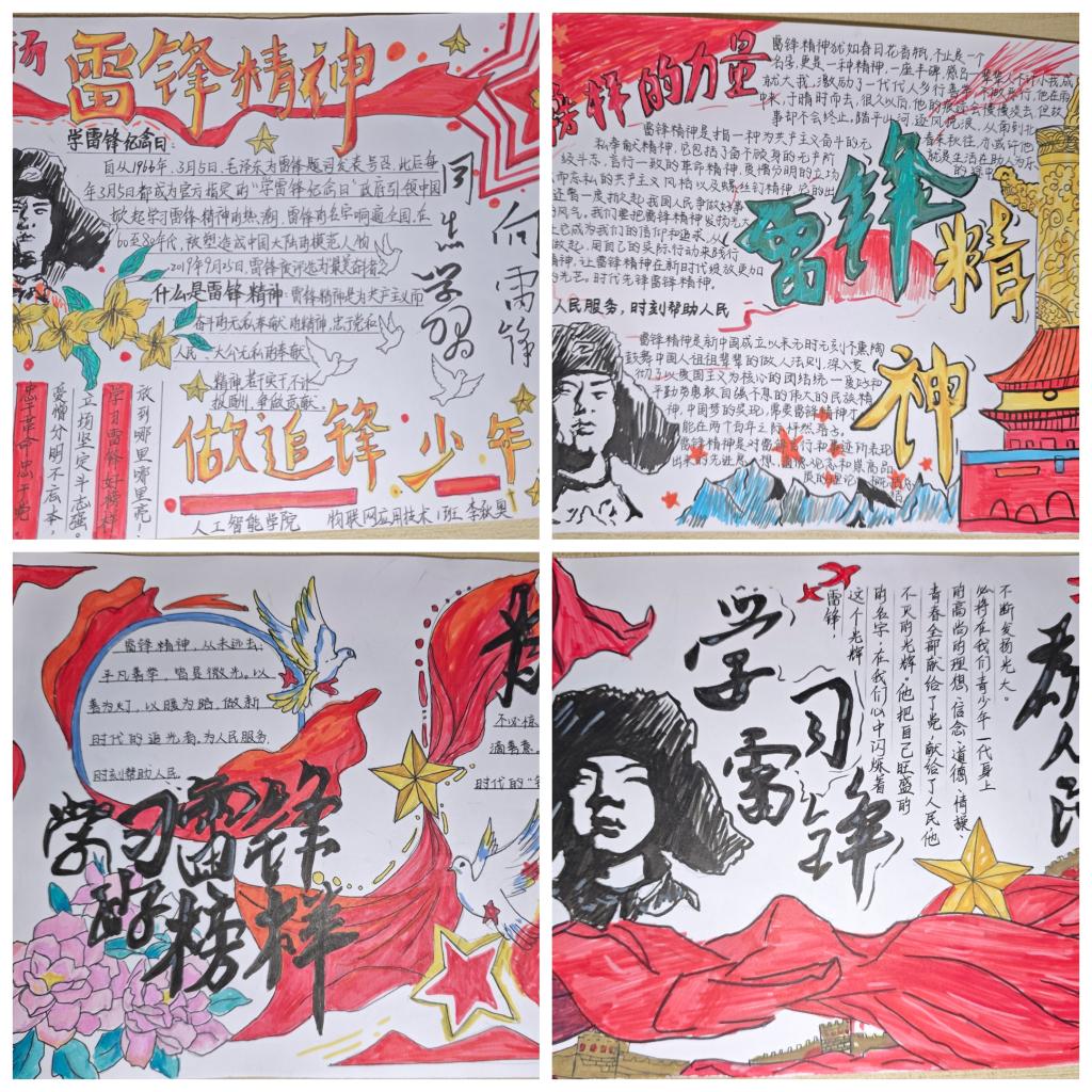 此次手抄报比赛,不仅为同学们搭建了展示创意与青春风采的平台,更让大家在创作与观赏中深化了对雷锋精神的理解与认同。学院将以此次活动为契机,持续开展学雷锋系列主题教育,推动雷锋精神进校园、进班级、入人心,引导广大青年学子把奉献精神与责任担当转化为学习动力和实际行动,锤炼品德修为,提升专业能力,以青春之我践行新时代雷锋精神。